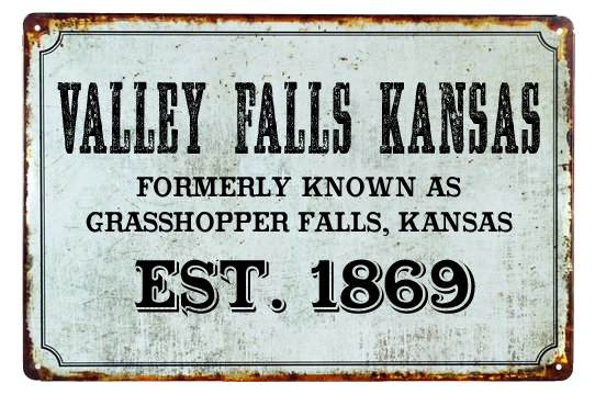 Grasshopper Falls would be platted in 1855 and incorporated in 1869. The grasshopper invasion of the 1870s was devastating and not a good promotional tool for a new and aspiring town. Aided by Legislature, the name of the river was changed to the Delaware (an American Native tribe most dominant in the region) and the twice more named town, eventually became Valley Falls.